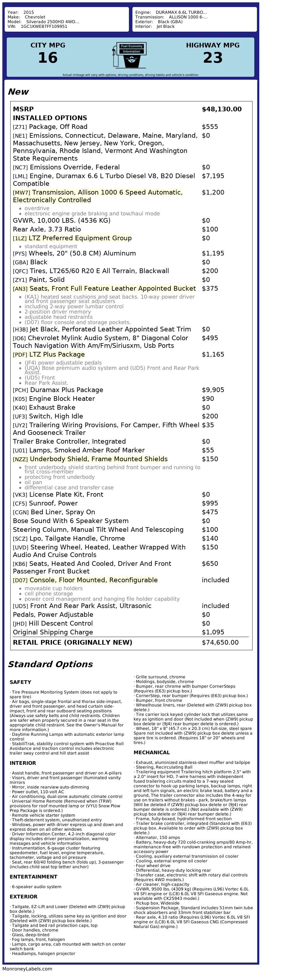 additional equipment [PCH] duramax plus package $9,905.00