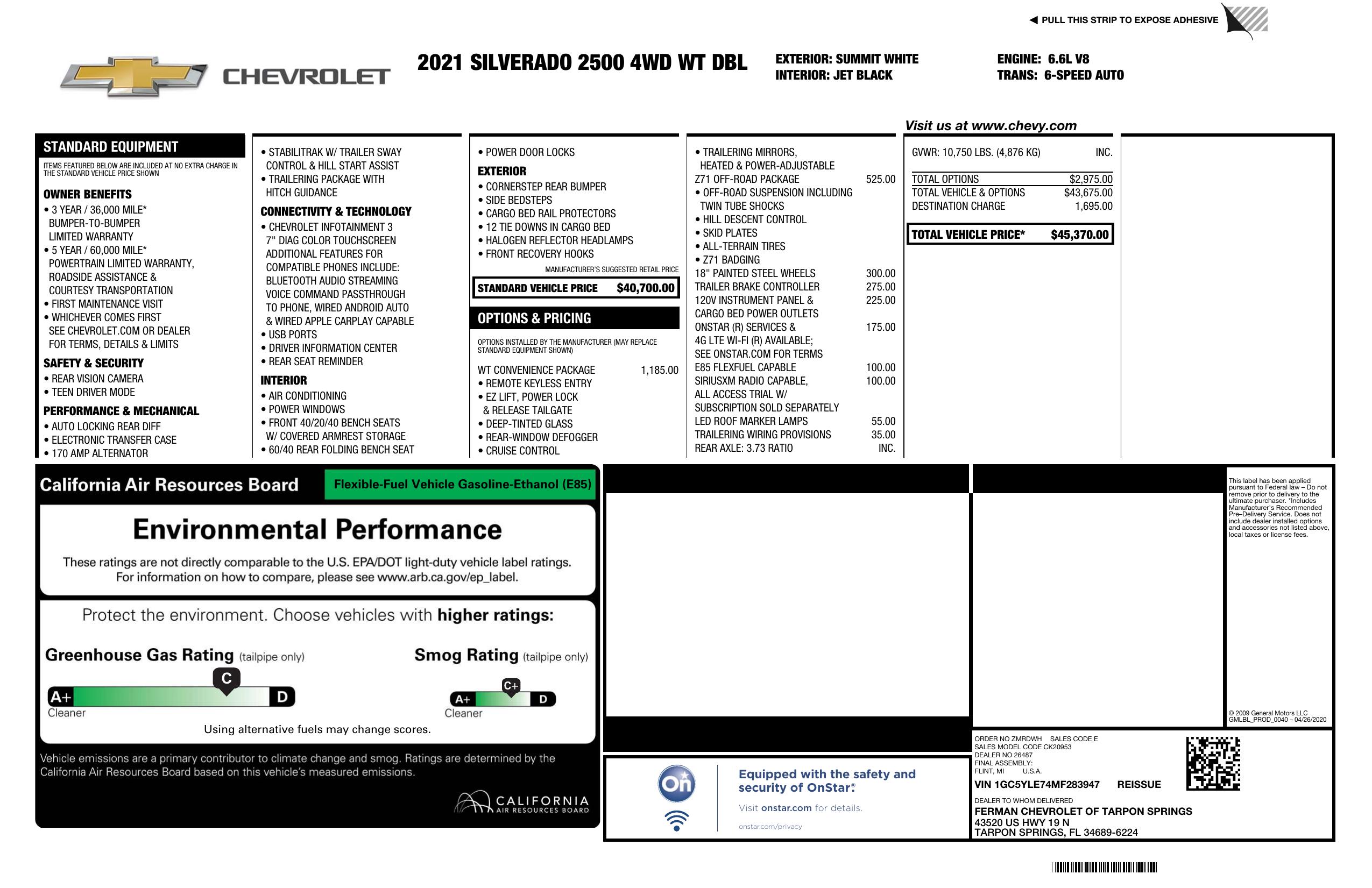 2021 Chevrolet Silverado 2500HD 4WD Double Cab 162" Work Truck